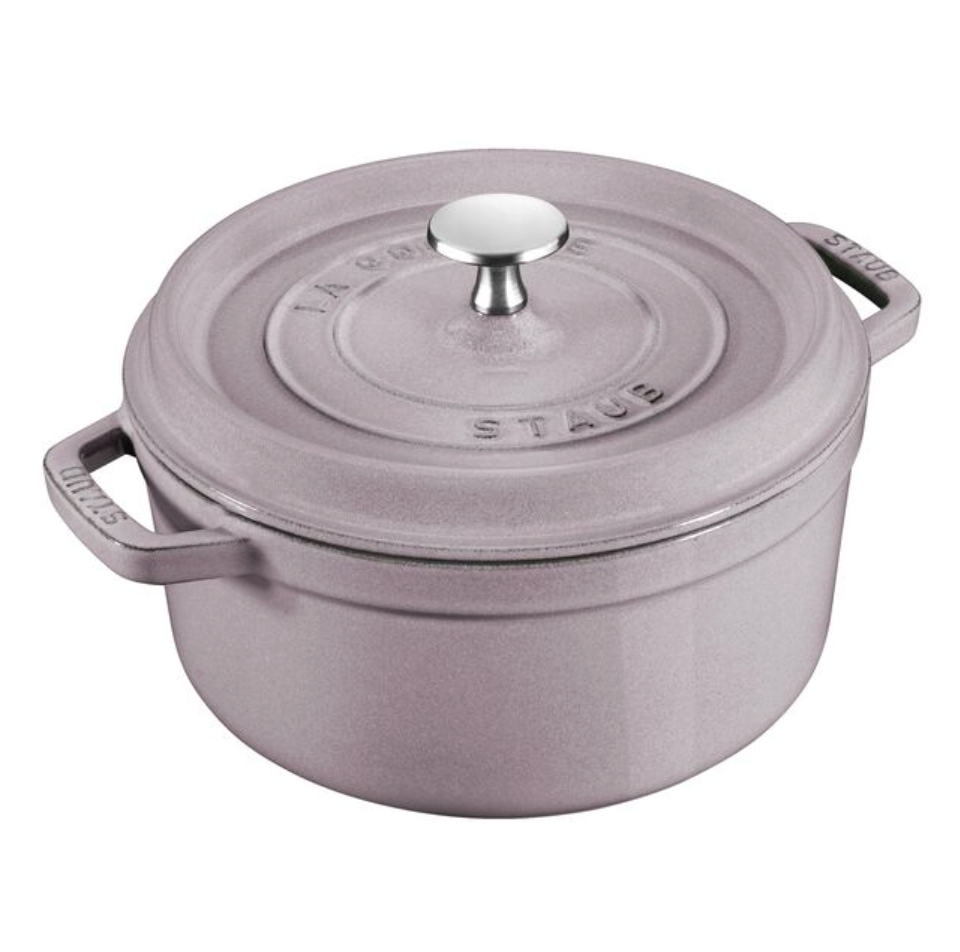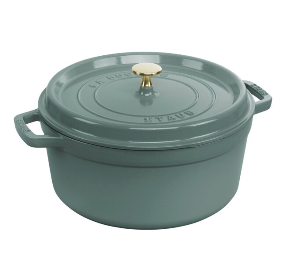 This round Staub cocotte made from easy to care for, durable cast iron is ideal for cooking meat or vegetables gently and healthily. This colourful roasting pan has caught the attention of top chefs such as Paul Bocuse and is a good option for cooking enthusiasts and professional chefs alike. It has a diameter of 26 cm, a height of 17 cm and a capacity of 5.2 L. The cocotte is coated with matte black enamel on the inside, which creates a highly efficient stewing effect that intensifies the natural flavour of a dish. Enamel's outstanding cooking properties improve with every use. The robust cast iron roasting pan retains heat and distributes it evenly across all surfaces of the pan, cooking each and every ingredient gently and equally. The special under-lid drop structure dispenses the condensation produced during cooking evenly over food, making it fantastically tender.