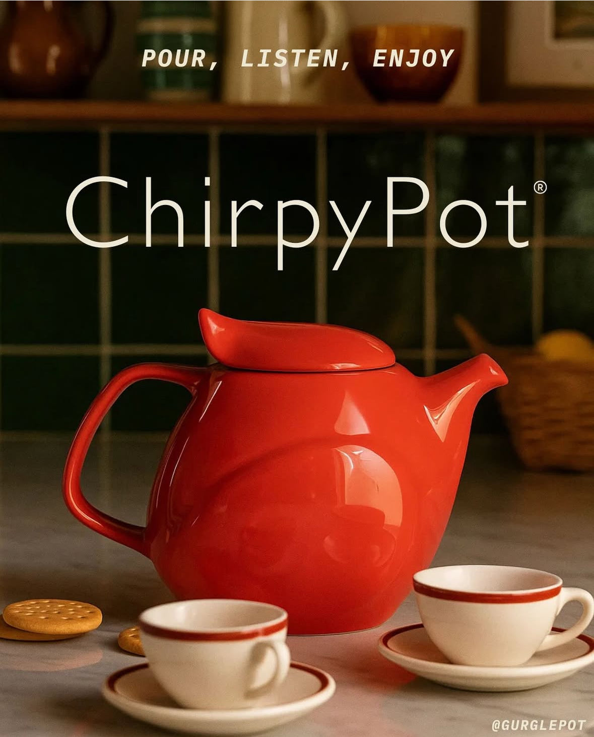 A bird shaped teapot with infuser has a charming "chirping" sound as tea is poured.